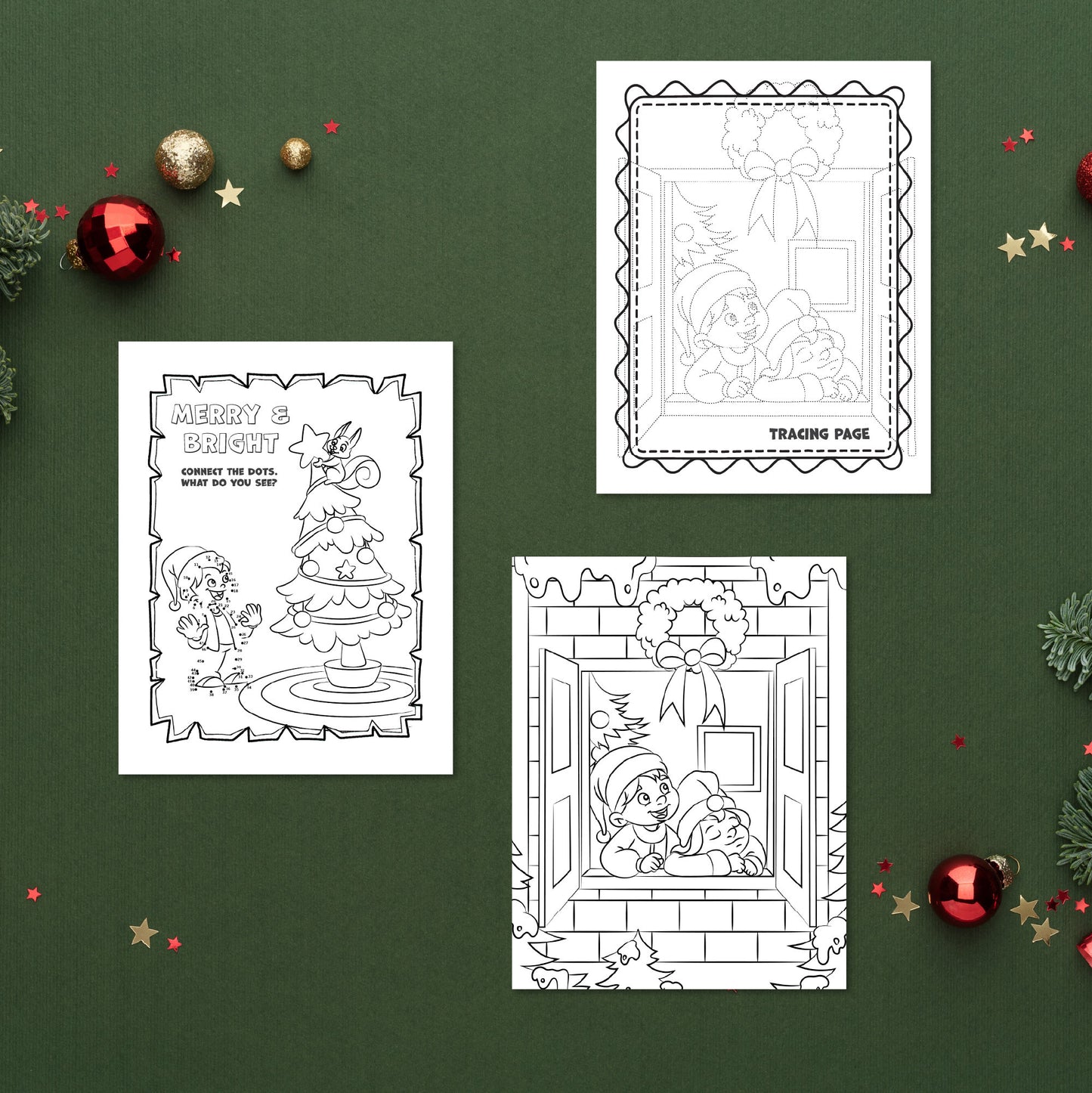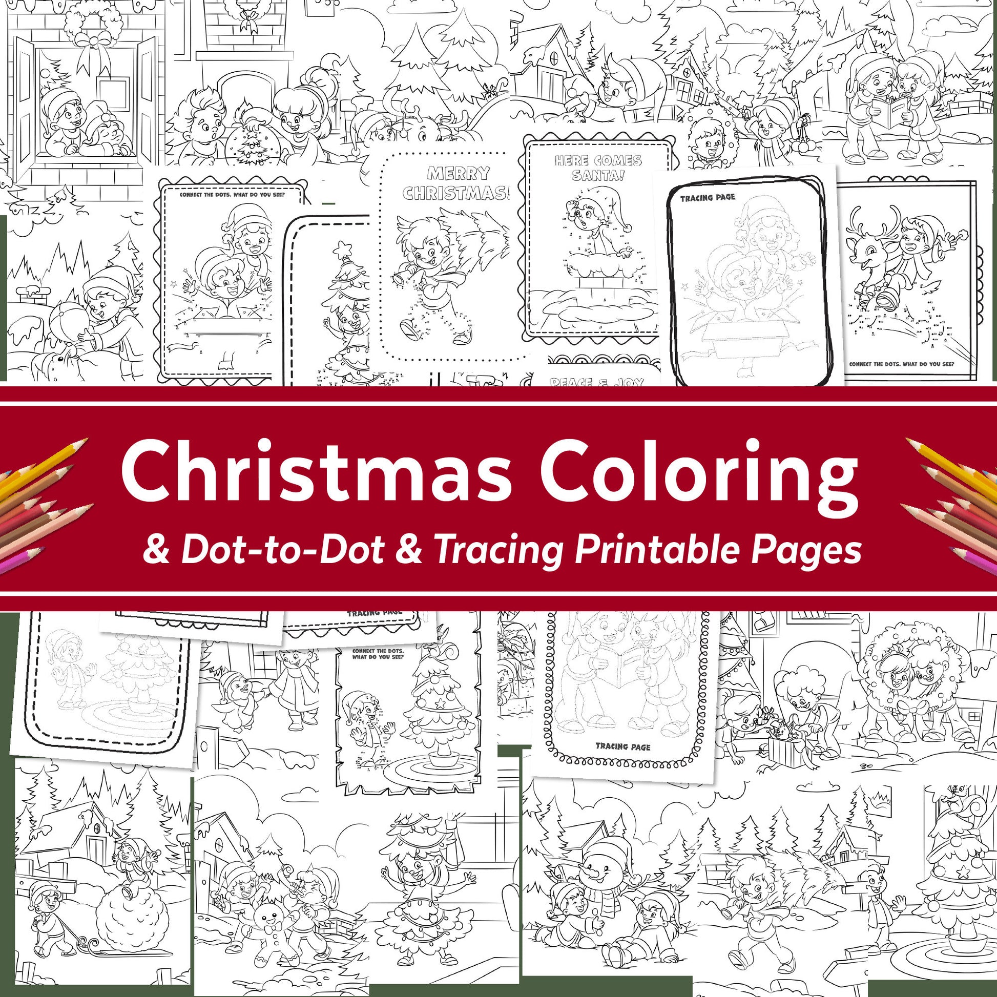 Christmas Coloring Pages with Dot-to-Dot and Tracing
